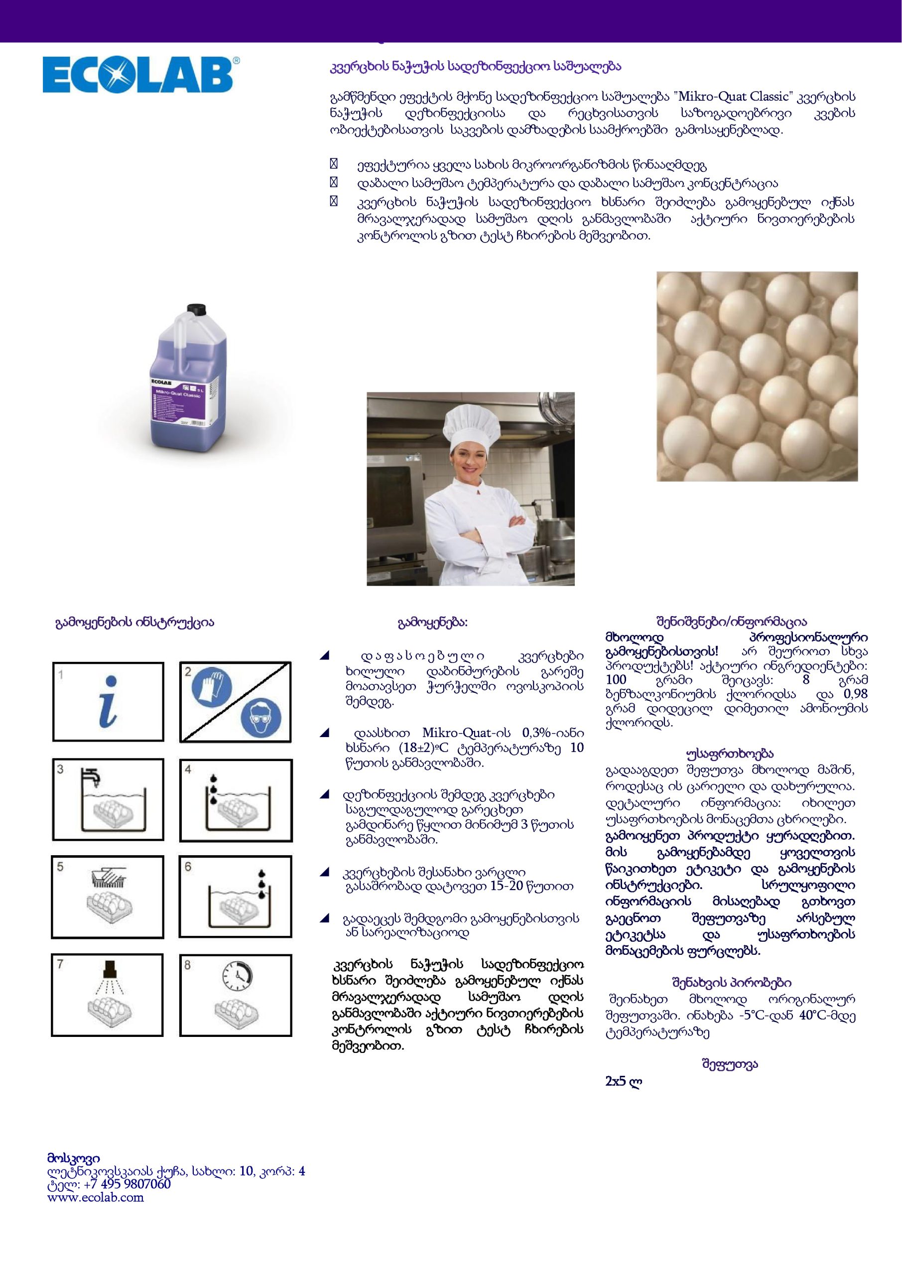 ეკოლაბი – სადეზინფექციო და სარეცხი საშ. (კვერცხის დეზინფექცია)MIKRO-QUAT CLASSIC 5 ლ
