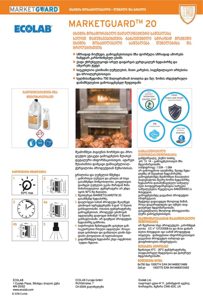 ეკოლაბი – ცხიმის მოსაშორებელი მაღალეფექტური საშუალება ხელით დამუშავებისთვის “Marketguard 20”