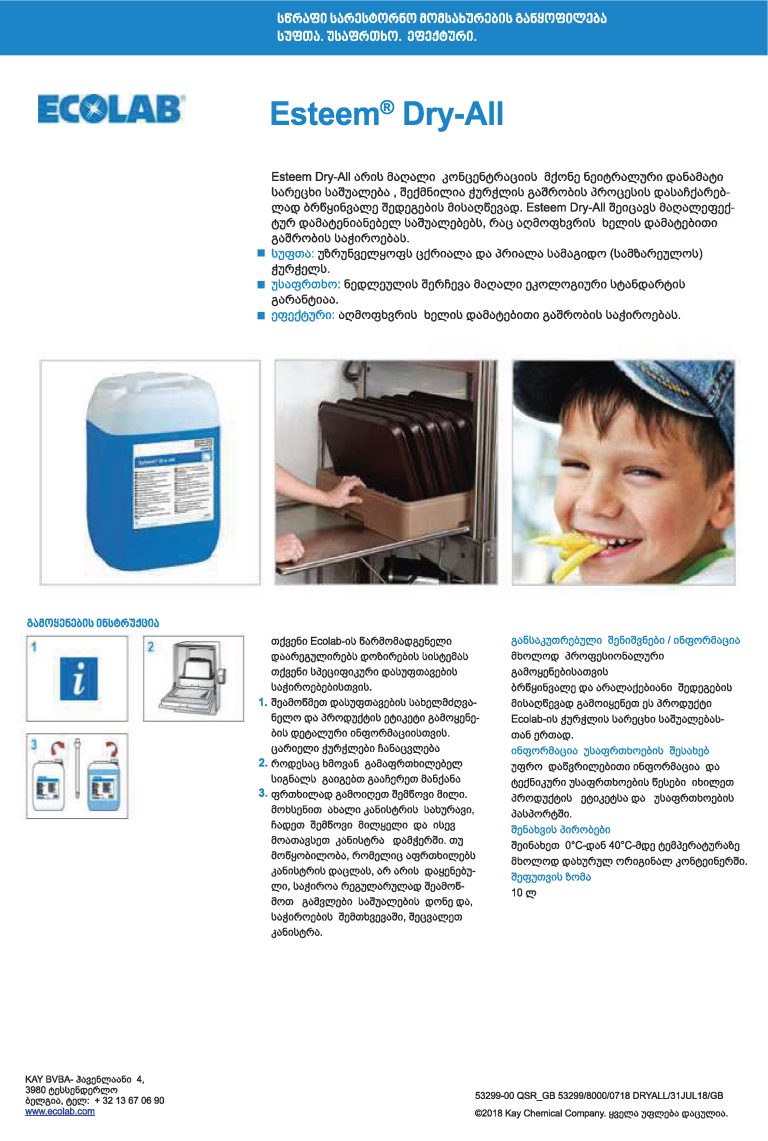 Ecolab – KAY ESTEEM DRY ALL NCSE ჭურჭლის მანქანის სავლები 1×10ლ
